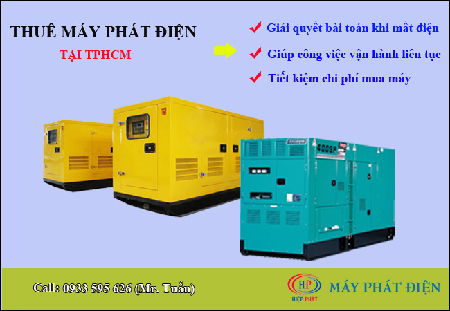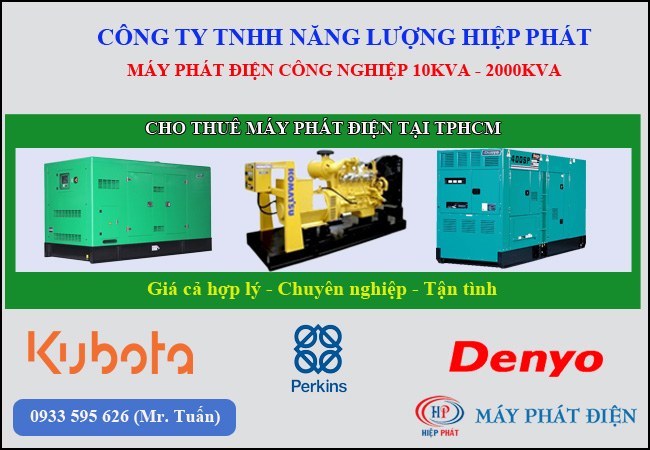 Hiện nay, Hiệp Phát Power là đơn vị chuyên cung cấp dịch vụ cho thuê máy phát điện tại Tphcm, với kinh ngiệm nhiều năm trên thị trường Hiệp Phát đã nhận được sự tin tưởng của đông đảo khách hàng. Nếu có nhu cầu thuê máy phát điện tại TPHCM, Quý khách vui lòng liên hệ Hot line: 0933 595 626
