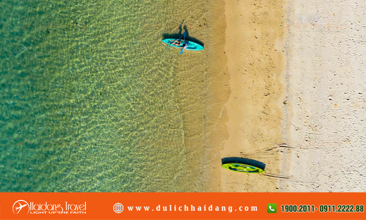 Nếu bạn thích vừa du lịch vừa được hoạt động giải trí và thử thách bản thân thì có thể chọn chèo thuyền Kayak. Chèo thuyền Kayak giữa làn nước biển trong veo như ở Điệp Sơn là một trải nghiệm không phải nơi nào cũng có, đồng thời còn là cơ hội cho bạn chiêm ngưỡng hòn đảo xinh đẹp này từ một góc nhìn rất khác đấy!