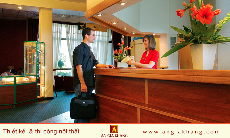 Quầy lễ tân thường là nơi check in/ check out của khách, do đó phải đầu đủ các tiện ích về phòng, ghế cho nhân viên và có cả bộ phận, nơi đón tiếp khách.